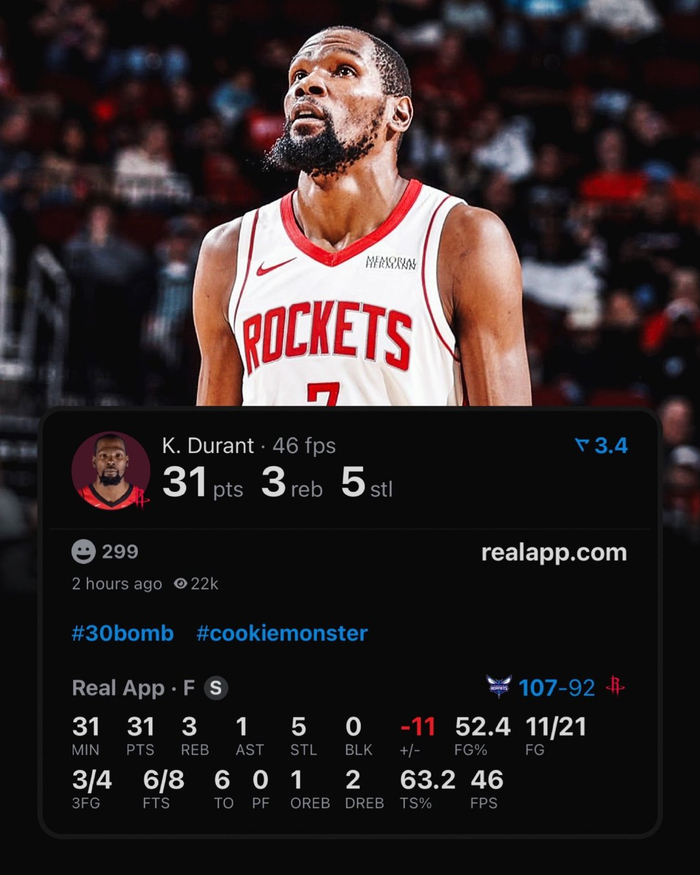 杜兰特成为火箭队史砍下30+分5+抢断的最年长球员。
